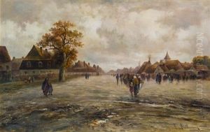Reges Treiben Vor Einem Hollandischen Dorf
