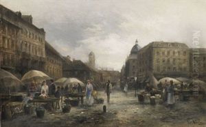 Vielfiguriges, Morgendliches Marktreiben Auf Stadtischem Platz
