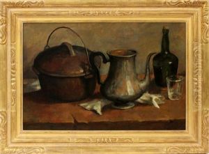Still Life - Brass Bowl, Copper Coffee Pot And Pigeons