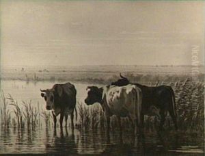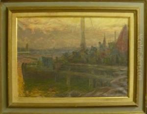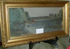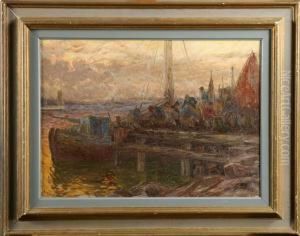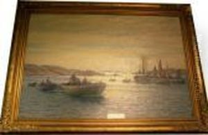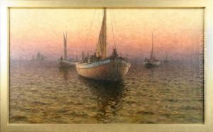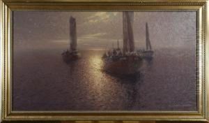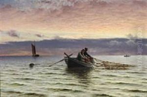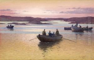 Fishermen By The Pound Nets, Early Morning. Signed Emil Ekman