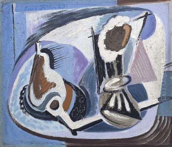 Filla, Emil: Still Life With Fruits, 1929.oil And Sand With Scratches On Wood. Signed And Dated. - Very Smallparts With Loss Of Colour. - Professor Dvorak Confirmed Theauthenticity Of The Painting