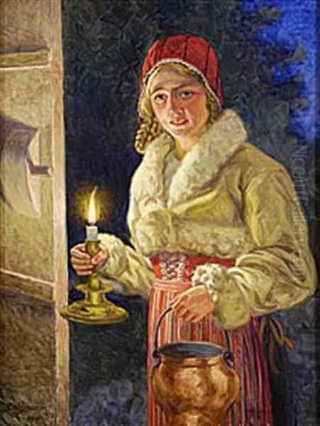 Bring the timeless beauty of Emil (Harald Emanuel) Lindgren's Allmogeflicka Med Ljus into your home with a handmade oil painting reproduction. Carefully recreated on canvas by skilled artists using traditional techniques, this piece captures the delicate brushwork, subtle light, and vibrant color of the original masterpiece. With museum-level quality and rich texture, it brings elegance and artistic depth to any space. Enjoy free shipping and make this masterpiece a part of your personal collection.