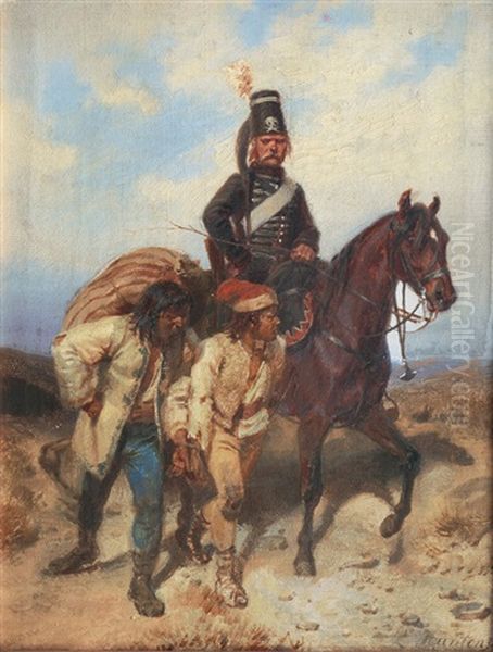 A Prussian Hussar With Captives