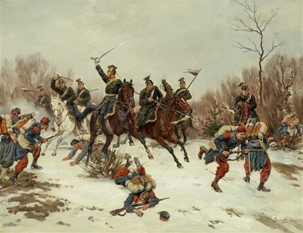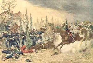 Gefecht Zwischen Reitern Eines Preussischen Ulanen-regiments Und Franzosischen Infanterie-soldaten