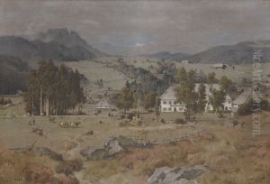 Die Hirtin Mit Ihren Kuehen Bei Dem Felsmassiv