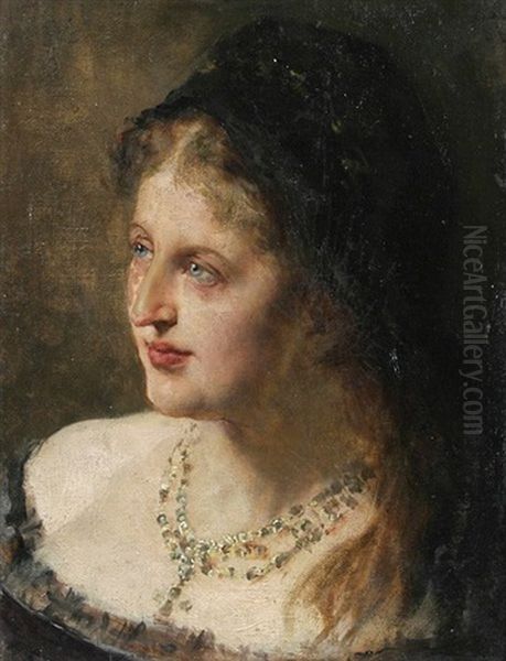 Brustbildnis Einer Dekolletierten Dame Mit Schwarzem Schleier Im Dreiviertelprofil Nach Links