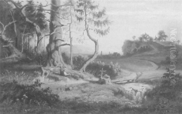Landschaft Mit Rastender Bauerin
