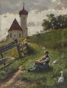 Begegnung Vor Einer Bergkulisse (unterberg Bei Salzburg?)
