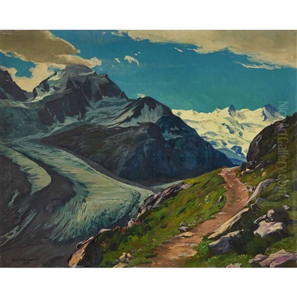 Tschiervagletscher Mit Berninagruppe Oil Painting by Emil Schulze