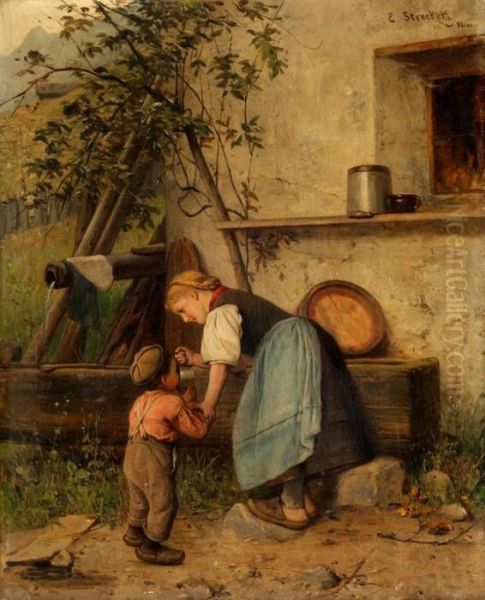 Bring the timeless beauty of Emil Strecker's Kleines Madchen Und Knablein Am Wassertrog Vor Dem Haus into your home with a handmade oil painting reproduction. Carefully recreated on canvas by skilled artists using traditional techniques, this piece captures the delicate brushwork, subtle light, and vibrant color of the original masterpiece. With museum-level quality and rich texture, it brings elegance and artistic depth to any space. Enjoy free shipping and make this masterpiece a part of your personal collection.