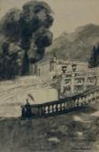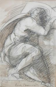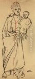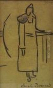 Bernard, Emile: Girl With A Basket, Ca. 1888.charcoal On Paper, Mounted On Blue Paper. Studio Stamp. - Stained.minimally Brownish. 3 Tears