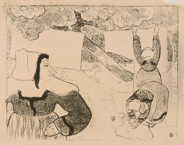 Bretonnes Etendant Le Linge