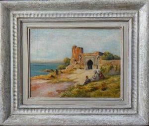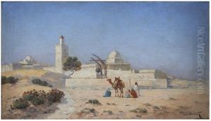Ansicht Einer Nordafrikanischen, Arabischen Stadt Mit Hausern Und Minarett Sowie Figurenstaffage