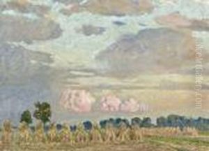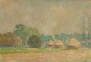 Landscape With Haystacks At Nightfall