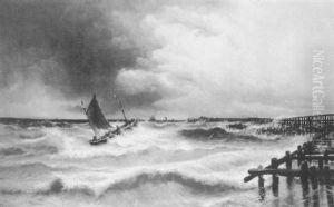 Bateau De Peche Dans La Tempete Devant La Jetee