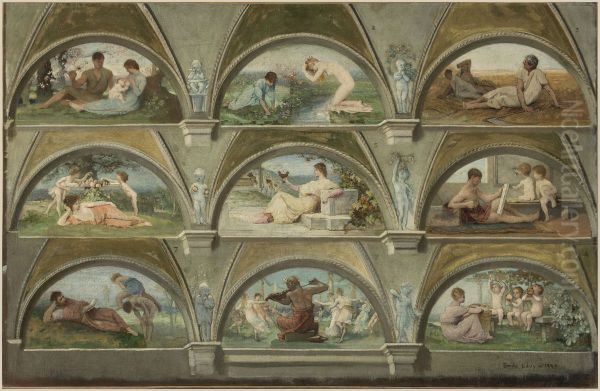 Bring the timeless beauty of Emile Levy's Esquisse pour le salon des cariatides de l'Hotel de Ville de Paris : Scenes allegoriques de la vie quotidienne (voussures) into your home with a handmade oil painting reproduction. Carefully recreated on canvas by skilled artists using traditional techniques, this piece captures the delicate brushwork, subtle light, and vibrant color of the original masterpiece. With museum-level quality and rich texture, it brings elegance and artistic depth to any space. Enjoy free shipping and make this masterpiece a part of your personal collection.
