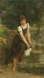 Portrait Of A Young Girl (after William Bouguereau's Sur Le Rocher)