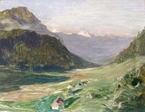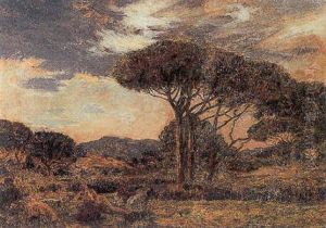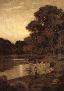 Paysage Sur Deux Registres Avec Baigneuse En Haut