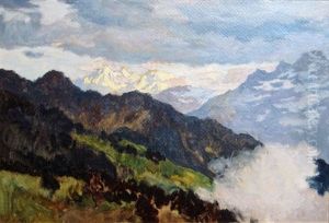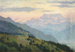 Hirte Mit Seinen Kuhen Im Gebirgstal