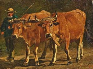 Bauer Mit Zwei Ochsen Auf Einem Feldweg