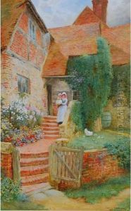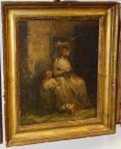 Mother And Child In Front Of A Cottage In The South