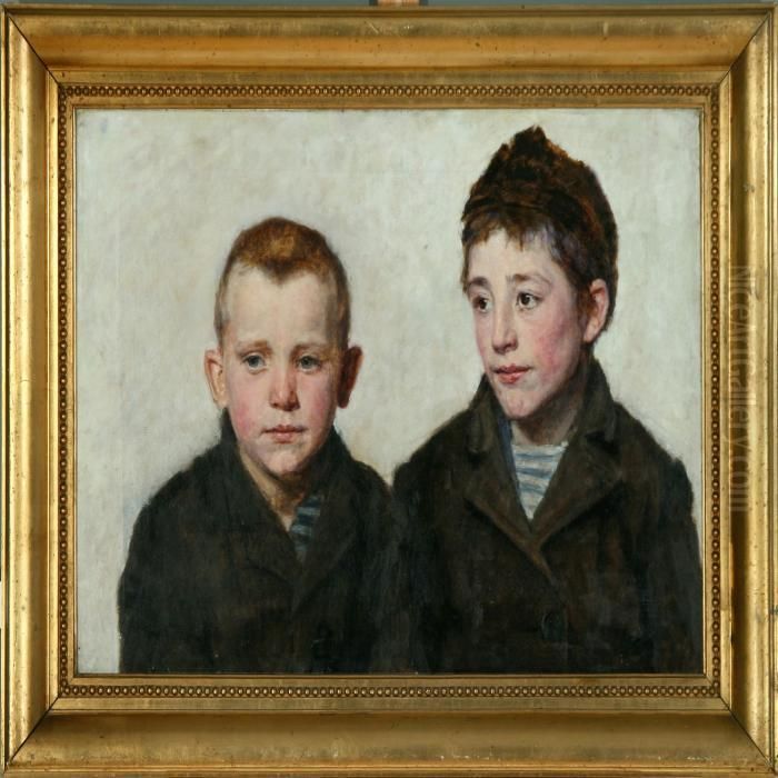 "to Drenge Fra Asylet". Two Asylum Boys. Unsigned. Inscribed On The Stretcher Emilie Mundt