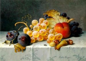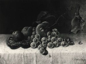 Still Life With A Peach, Grapes And Plums