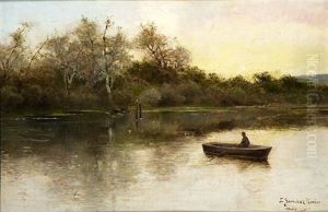 Fisherman In A Boat On The River Henares At Alcala