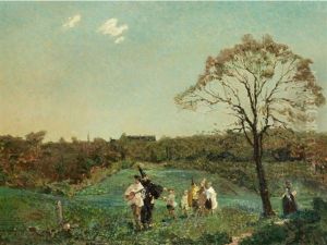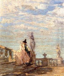 A Courting Couple Seated Beneath A Tree Entertained By A Flautist