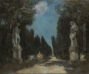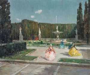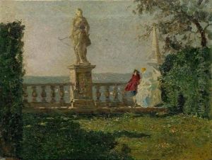 Giardino E Fontana Con Personaggi In Costumi Settecenteschi