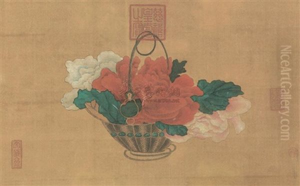 Flowers Oil Painting by Empress Cixi Manchu-Chinese