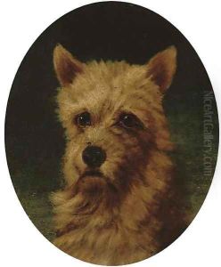 Portrait of a lady, seated three-quarter-length, in a white dress and mop hat with a blue ribbon