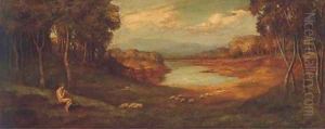 Cattle watering in a wooded landscape; and Figures on a wooded track