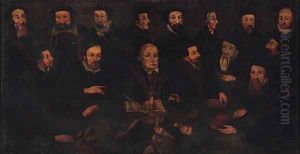 Allegory with Martin Luther surrounded by Beza, Calvin, Melanchton and other Protestant Leaders, gathered round a Table