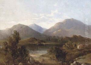 Children On A Wooded Path In A Mountainous Lake Landscape