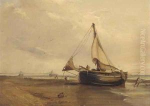 A fishing boat on the shore, Brighton Chain Pier beyond