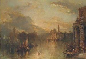 William Seguier and Mr W. Battean in a boat in a river landscape