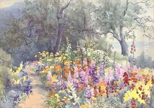 Portrait of a lady, three-quarter-length, in a mauve and pink dress, holding a rose in her left hand
