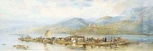 Anglers on the Bank of a tranquil River at Sunset