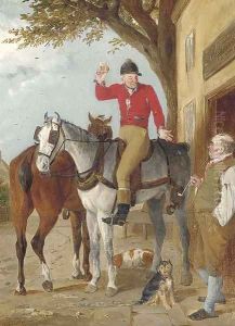 A young boy on a pony, a huntsman beyond