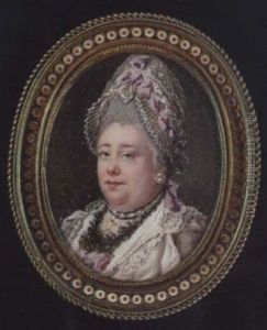Portrait of a woman, half-length, wearing a white dress and pink shawl