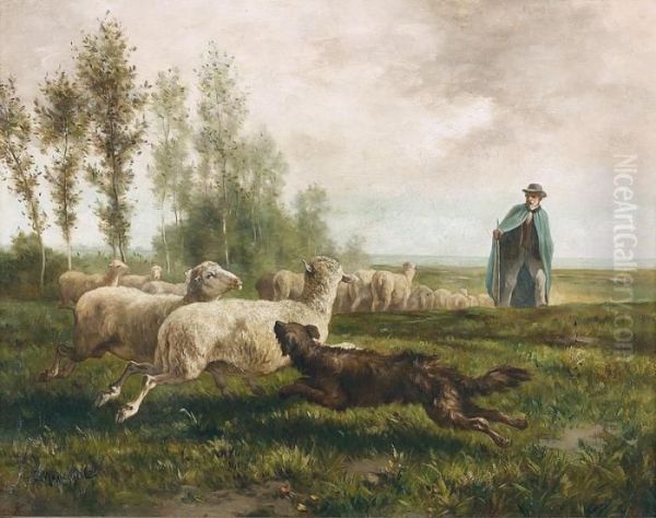 Weidelandschaft Mit Hirten, Herde Und Hund