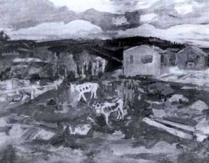 Norrlandskt Landskap Med Hus Samt Hastekipage