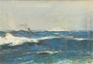 Sturmische See Mit Dampfer Am Horizont