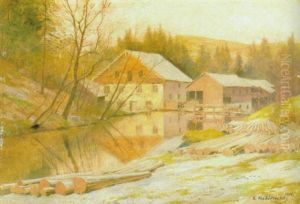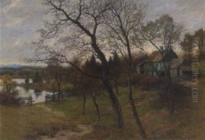 Baumbestandene Flusslandschaft Mit Kirche Und Hausern. Ol Auf Malpappe, Etwas Verzogen. 58 X 79,5 Cm. Munchen 1904. Links Unten Signiert Und Datiert Sowie Ruckseitig Signiert, Datiert Und Mit No. 267 Versehen. Gerahmt.