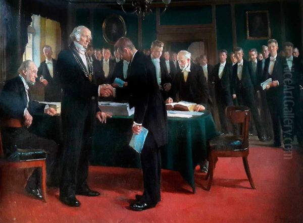 Bring the timeless beauty of Erik Henningsen's J.N. Madvig overraekker som Rector magnificus de unge Studenter deres akademiske Borgerbreve. into your home with a handmade oil painting reproduction. Carefully recreated on canvas by skilled artists using traditional techniques, this piece captures the delicate brushwork, subtle light, and vibrant color of the original masterpiece. With museum-level quality and rich texture, it brings elegance and artistic depth to any space. Enjoy free shipping and make this masterpiece a part of your personal collection.