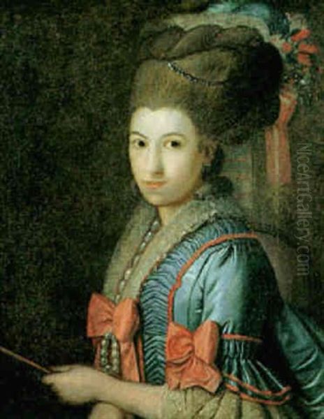 Portraet Af En Ung Pige I Bla Kjole Og Hojt Opsat Har