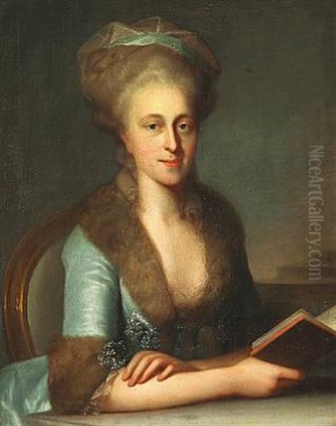 Portrait Of Johanne Charlotte Sophie Zinn, Nee Preisler (1754-1833) In A Blue Silk Dress With Fur Edging