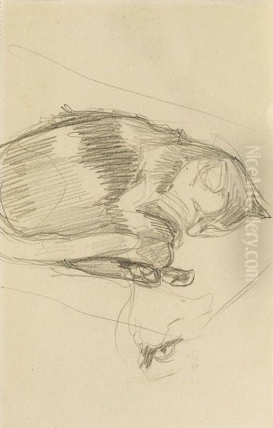 Katzenstudie (ruckseitig Zwei Katzenstudien)