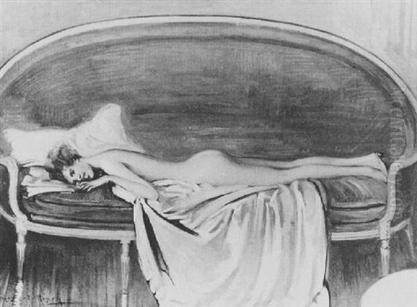 Young Woman Reclining On A Sofa Oil Painting by Ernest Rosen